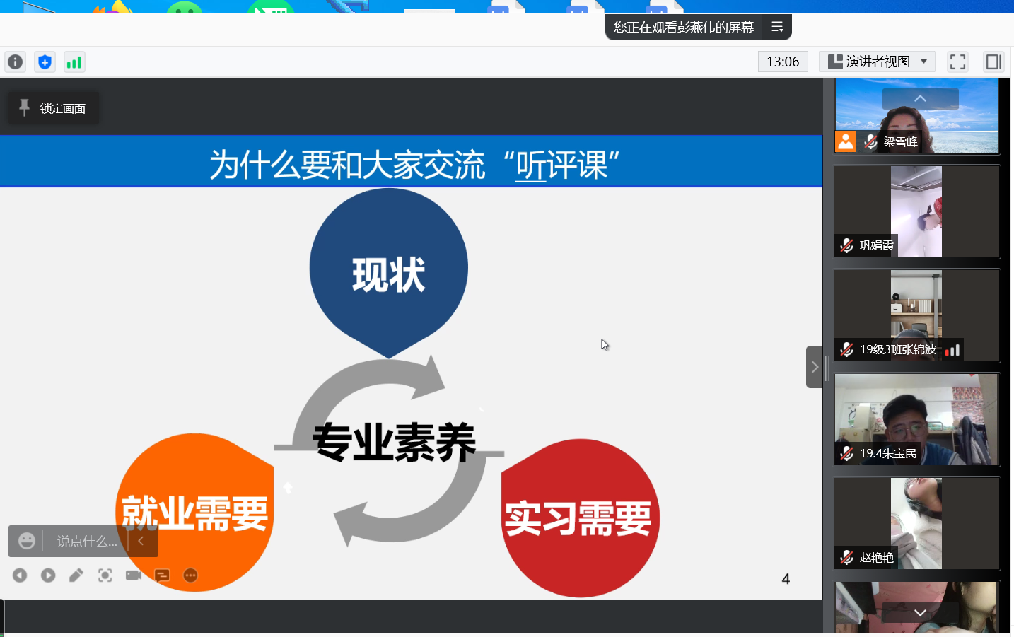 彭燕伟老师首先表示对于师范生来说听评课是迈入课堂的第一步,也是向一线教师学习的主要途径,掌握听课和评课的基本方法与原则对于提高师范生教学能力至关重要。