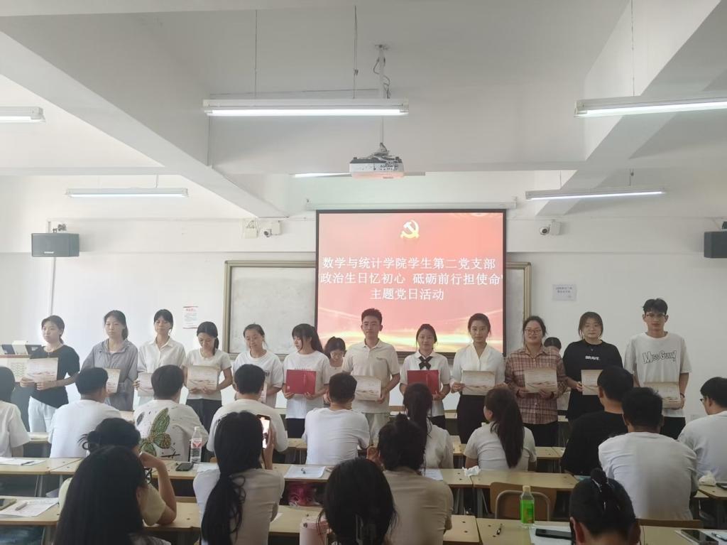 数学与统计学院学生第一、第二党支部开展政治生日忆初心,砥砺前行担使命主题党日活动