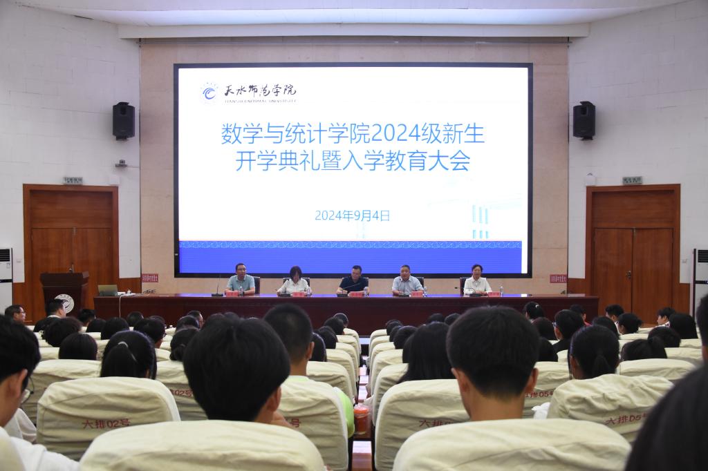 9月4日,数学与统计学院2024级新生开学典礼暨入学教育大会在二号报告厅隆重举行。学院领导班子成员、系主任、新生班主任、辅导员和298名新同学参加了大会,会议分为两个阶段,第一阶段为开学典礼,第二阶段为入学教育。