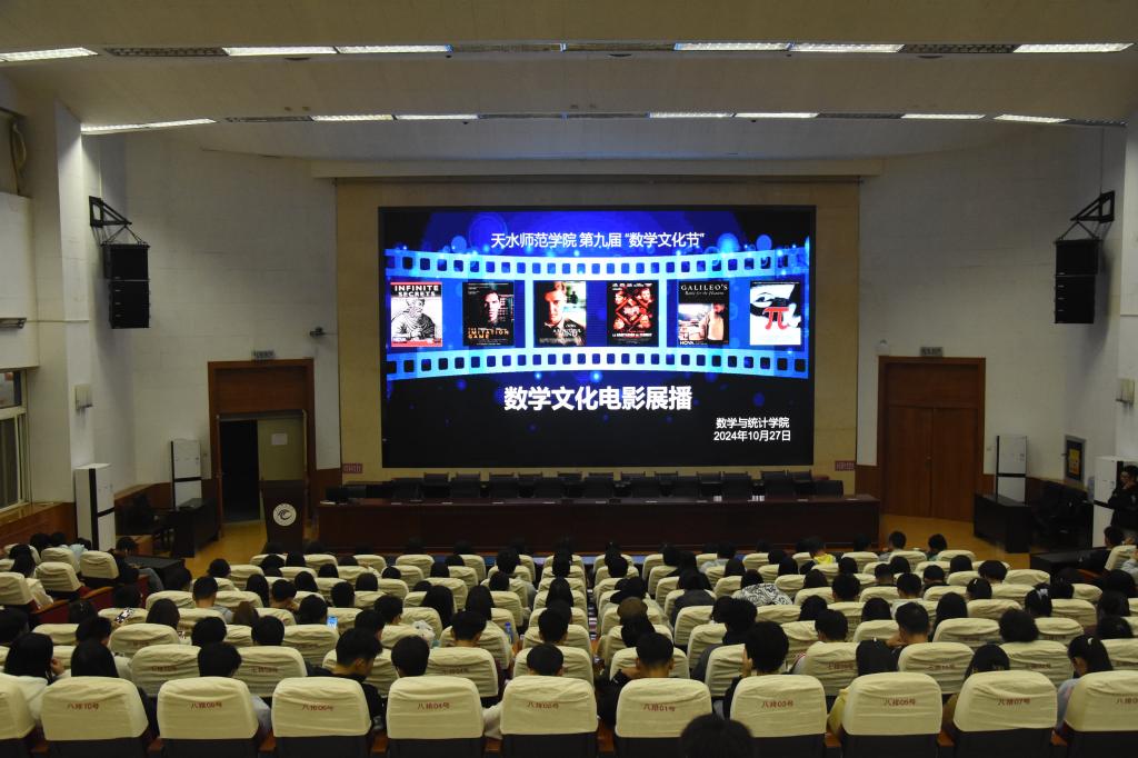 2024年10月27日晚,在第九届数学文化节活动开展期间,数学与统计学院团委、学生会精选了《人民的数学家》和《美丽心灵》两部数学文化相关电影,在二号报告厅播放,学院师生代表300余人观看了电影。