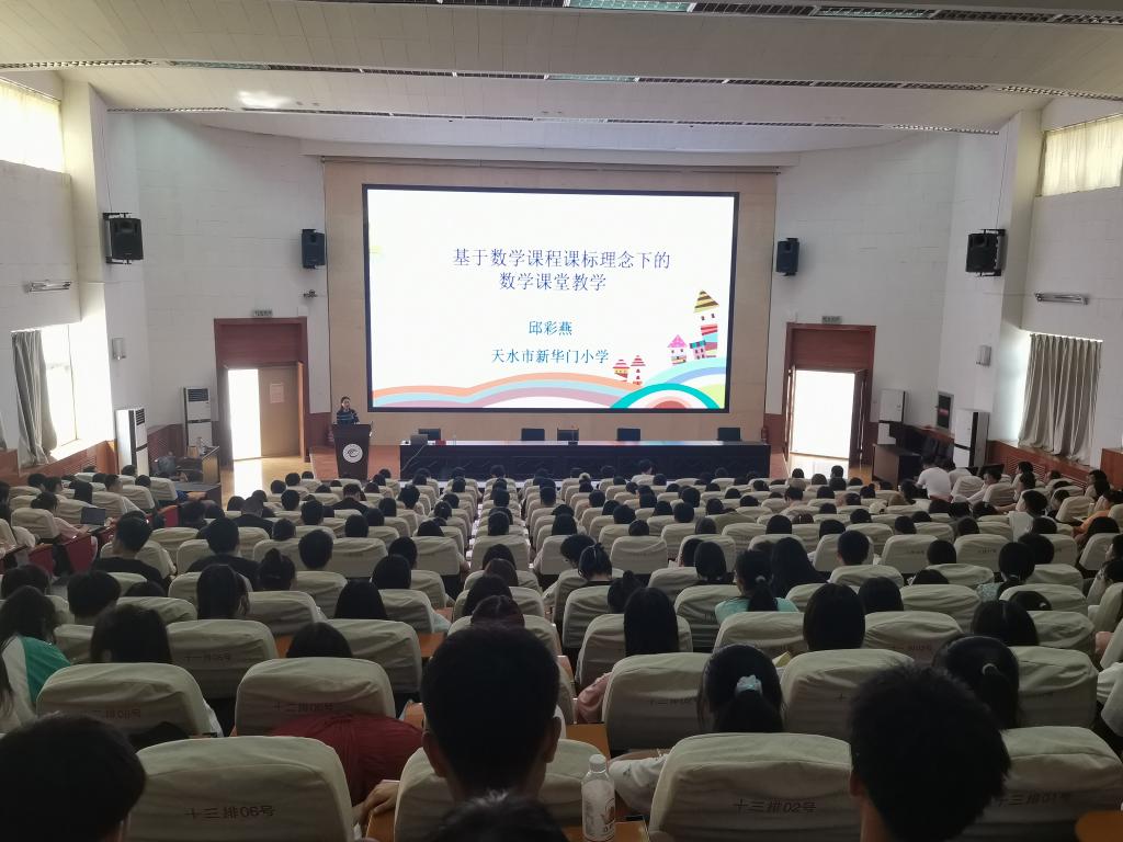 6月28日,应数学与统计学院邀请,天水师范学院附属实验小学邱彩燕老师在二号报告厅作了题为《基于数学课程标准理念下的数学课堂教学》的专题报告,数学与应用数学专业20级、21级学生共300余人参加。
